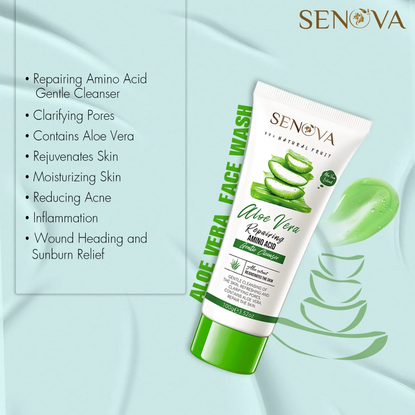 Senova Aloe Vera Repairing Amino Acid Gentle Cleanser effectively removes dirt, excess oil, and impurities while soothing and hydrating the skin. Enriched with aloe vera extract, it helps repair and refresh the skin, leaving it feeling soft, clean, and rejuvenated.
