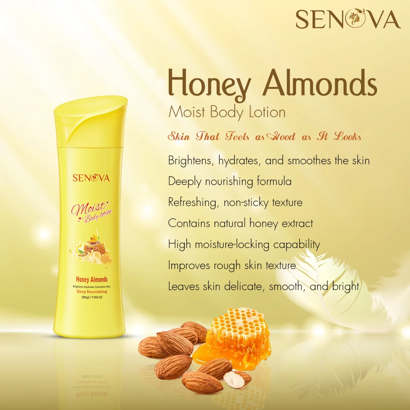 Senova Honey Almonds Moist Body Wash is a luxurious, nourishing cleanser designed to brighten and hydrate the skin. Enriched with honey and almond extracts, it helps replenish moisture, improve skin texture, and provide deep nourishment, leaving your skin smooth, radiant, and refreshed. Its rich, foamy formula gently removes impurities while ensuring long-lasting hydration and softness.