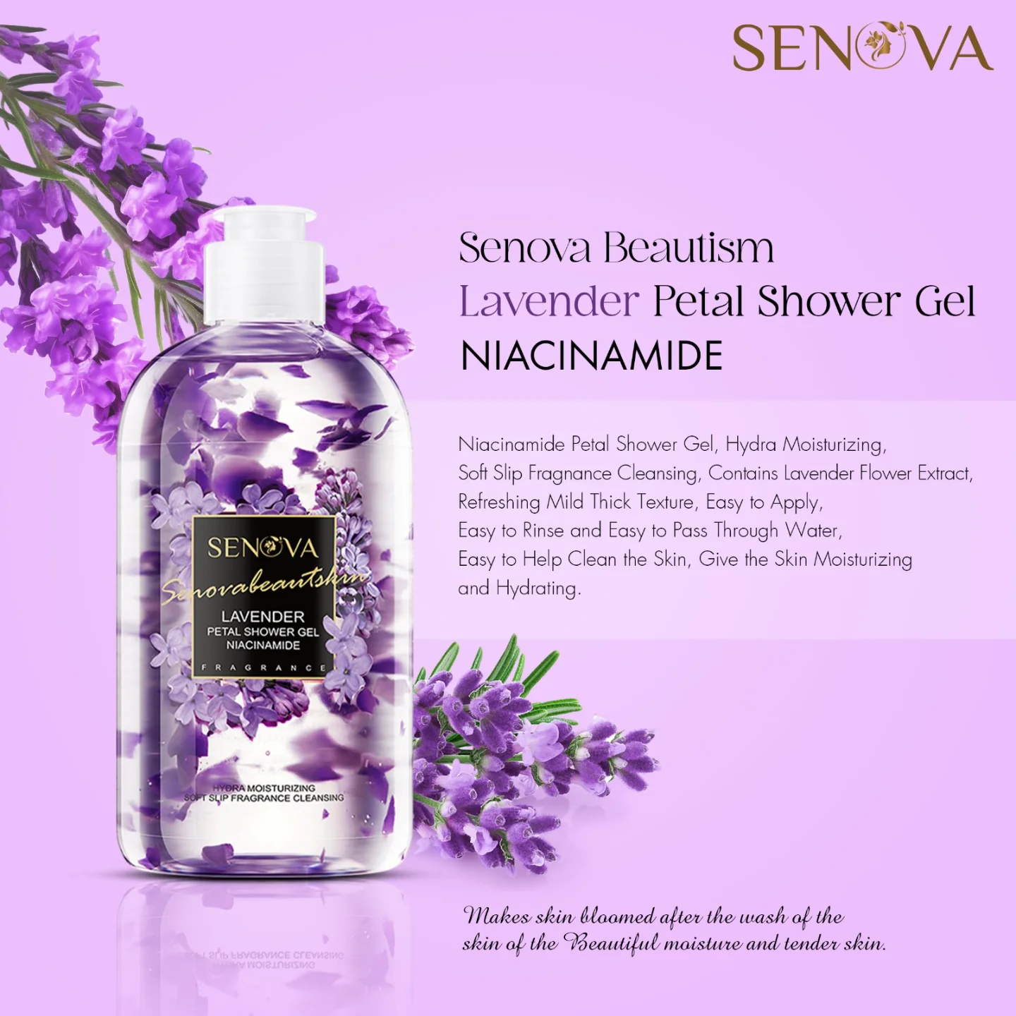 Senova Lavender Petal Shower Gel with Macadamia provides a luxurious cleansing experience, combining the relaxing scent of lavender with the nourishing benefits of macadamia. The gentle formula deeply cleanses while maintaining the skin’s natural hydration, leaving it soft, refreshed, and delicately scented. With visible lavender petals suspended in the gel, it offers a soothing and visually appealing bathing routine that promotes relaxation and skin nourishment.