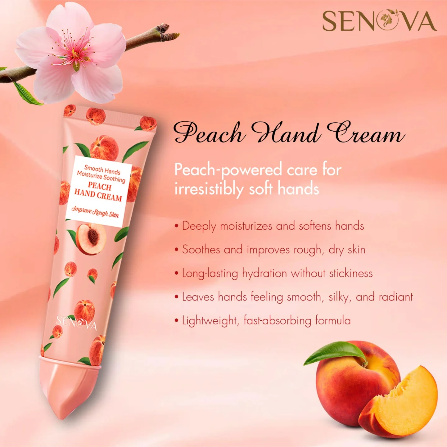 Senova Peach Hand Cream is a deeply hydrating formula designed to nourish, soften, and protect dry, rough hands. Enriched with peach extract and moisturizing ingredients, it helps replenish lost hydration, improve skin texture, and leave hands feeling smooth, supple, and delicately scented. The lightweight, non-greasy consistency absorbs quickly, making it ideal for everyday use.