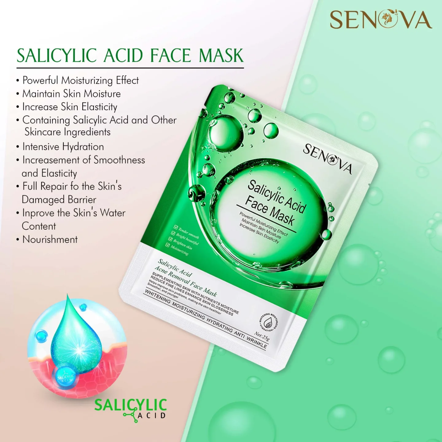 Senova Salicylic Acid Face Mask delivers deep hydration and nourishment while helping to repair the skin barrier. With powerful ingredients, it enhances moisture levels, improves skin elasticity, and promotes a smooth, refreshed complexion in just 15 minutes.