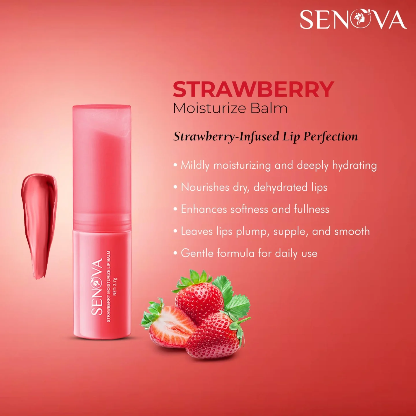 Senova Strawberry Moisturize Lip Balm is a nourishing lip care formula designed to provide deep hydration and relieve dry, chapped lips. Infused with strawberry extract, it helps restore softness, smooth lip texture, and lock in moisture for long-lasting hydration. The lightweight balm glides effortlessly, leaving lips feeling refreshed, supple, and delicately scented.